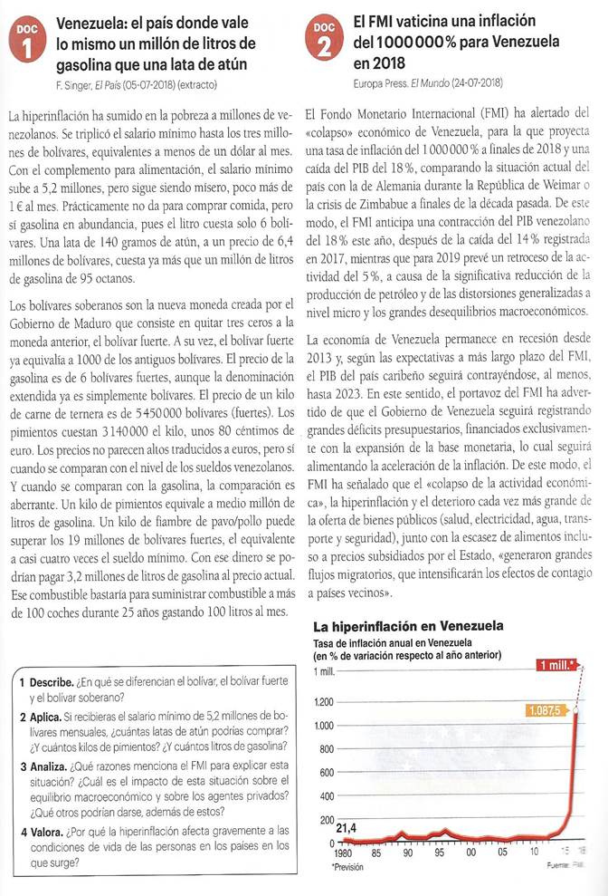 - Hiperinflación: subidas de precios superiores al 100%. Implica una pérdida tan fuerte del valor del dinero que el sistema monetario puede quebrar. El descontrol de los precios provoca desconfianza entre los ciudadanos, que recurren al trueque o a refugiarse en monedas extranjeras.