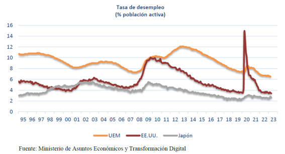 1¿Cuál es la tasa de paro de cada uno de los países o zonas que se muestran?
