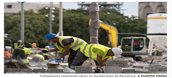 Trabajadores realizando obras en las Ramblas de Barcelona EUROPA PRESS