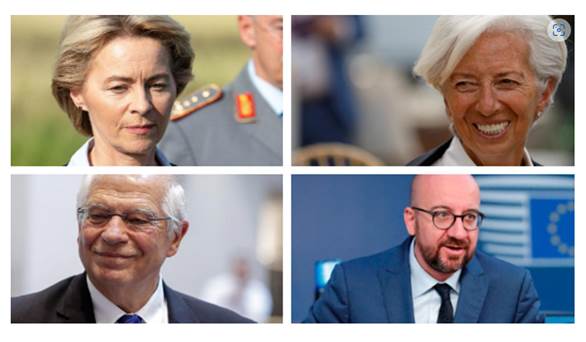 La alemana Ursula Von der Leyen será la presidenta de la Comisión Europea; Josep Borrell, el alto representante en Política Exterior de la UE; Christine Lagarde, la presidenta del Banco Central Europeo (CE), y Charles Michel, presidente del Consejo Europeo