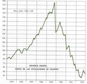 El crack del 29: los valores que se cotizaban en la Bolsa de Wall Street en Nueva York bajaron de forma masiva, arruinando a muchísimos inversionistas. Se cerraron empresas y bancos, se condenó al paro a millones de personas y, debido al efecto dominó, se trasladó el mismo problema a muchas naciones. Colateralmente afectó al resto del mundo produciendo paro y pobreza.