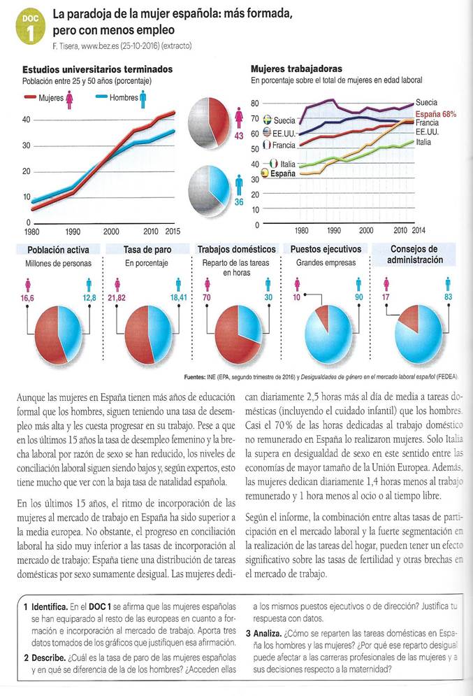 La brecha de género en diferentes esferas del mundo laboral.Henar de PedroLa desigualdad entre mujeres y hombres en el mundo laboral va mucho más allá del salario. La brecha de género está presente en prácticamente todos los ámbitos del empleo. De media, las mujeres sufren de tasas de paro más elevadas que los hombres, trabajan mucho más a tiempo parcial, menos horas a la semana, participan menos en el mercado de trabajo y tienden a hacerlo con más frecuencia en puestos no directivos.