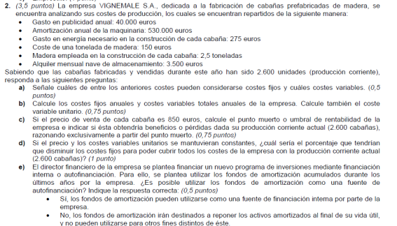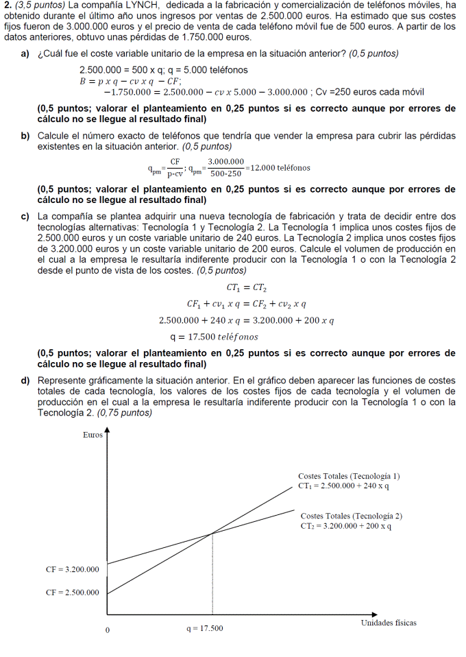 - Coste variable unitario del producto 300 euros