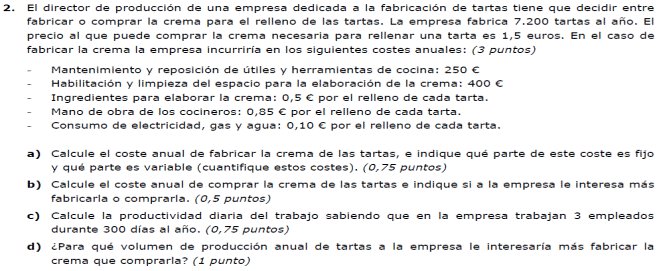 Ej5.- Dada una empresa en la que se han producido 2000 unidades de producto, y además: