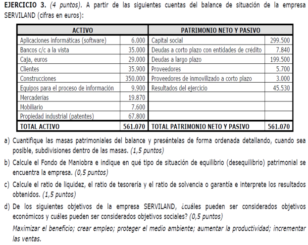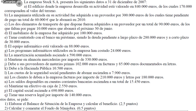 Una empresa tiene los siguientes elementos patrimoniales valorados en euros: