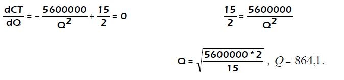 Derivando CTG respecto a Q, para obtener CTG mínimo hallamos: