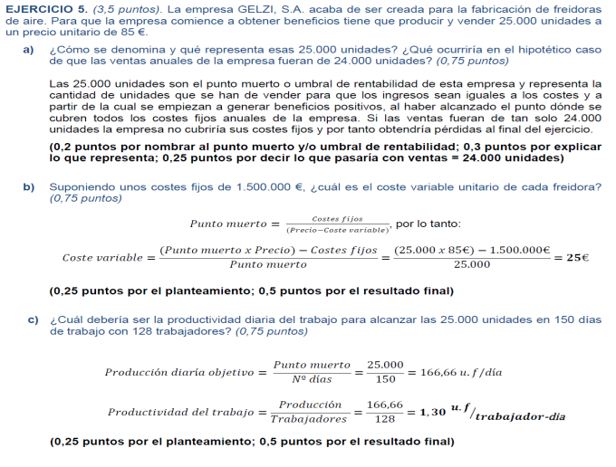 - b) Si al final del ejercicio ha perdido 1.400.000 euros. ¿Cuántos unidades de producto ha vendido? Si al final del ejercicio ha ganado 3.600.000 euros, ¿cuántas unidades de producto ha vendido?