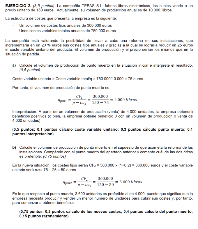 EJERCICIOS RESUELTOS UMBRAL DE RENTABILIDAD