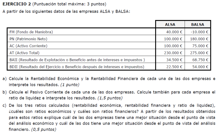 b) Compare los dos tipos de rentabilidad de ambas empresas: calcule los ratios, explique su significado y comente las diferencias.