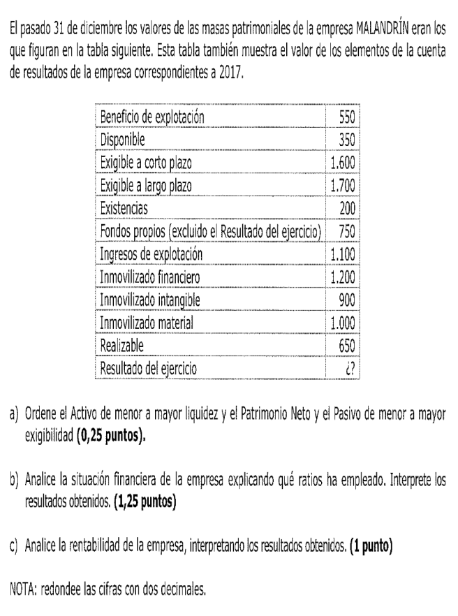 d) Realizar el análisis económico y financiero utilizando los ratios que conozcas e indicando en su caso alguna propuesta de mejora.