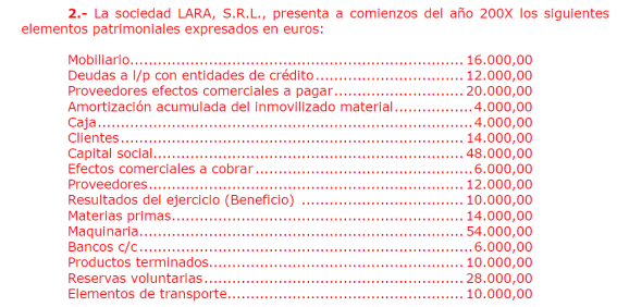 Una empresa tiene los siguientes elementos patrimoniales valorados en euros: