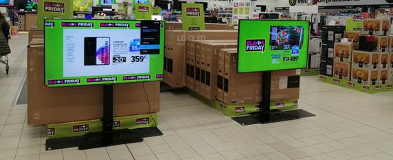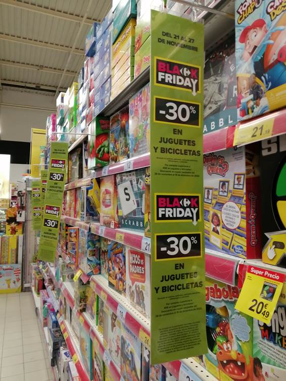 Carrefour   La compañía celebra el Black Friday hasta el 1 de diciembre con ofertas en prácticamente todas sus categorías: televisores con hasta un 35%, smartphones con rebajas de hasta un 30%, juguetes con rebajas de un 25%, moda con un 30%, relojes inteligentes con un 80% de descuento o patinetes eléctricos hasta un 60% rebajados. Tampoco falta la alimentación: Jamones y bombones con un 20%.
