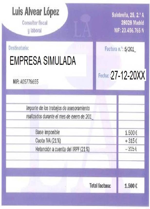 Se recibe la siguiente factura de un consultor: