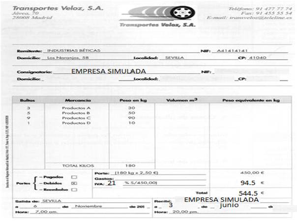 Se procede al pago de la nota de porte a la empresa de transportes.