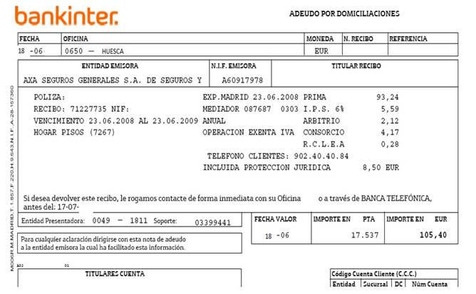 Se produce el correspondiente adeudo en cuenta, contabiliza la factura