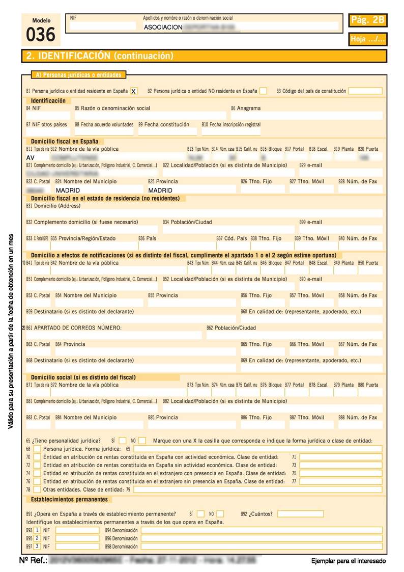 Identificación fiscal definitiva de la sociedad a efectos fiscales.