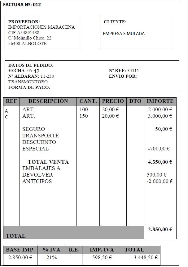 Se recibe la siguiente factura: