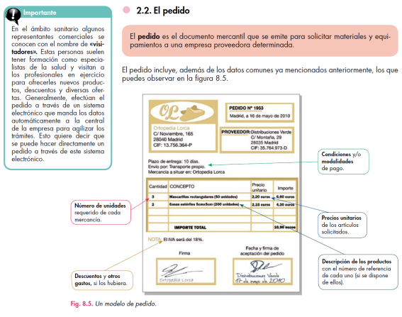 Se trata de un impreso en el que se detallan los artículos solicitados, así como las principales condiciones de la operación, salvo que estuviesen pactadas en un contrato de compraventa o de suministro.