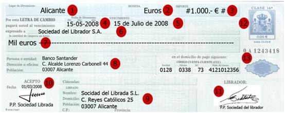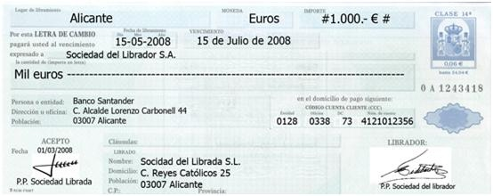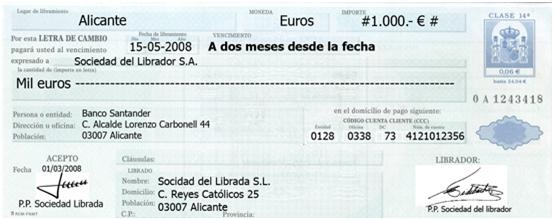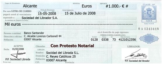 • El nombre del librado o persona que ha de pagar. No está obligado hasta que no acepte la letra.