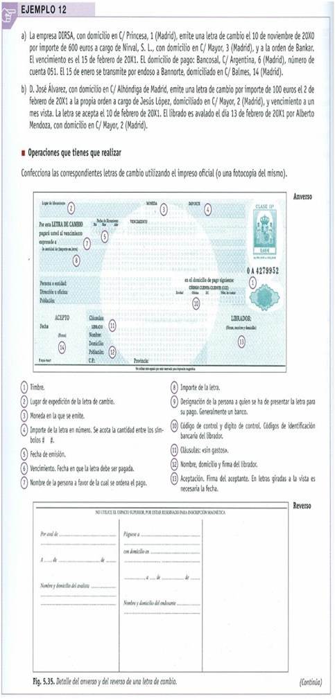 b) Viveros, S.L. envía, junto con la factura, a Flor, S.A.L. la letra para su aceptación y domiciliación bancaria, haciendo la posterior remisión de la misma e incluyendo un aval. Los datos necesarios para la cumplimentación son: