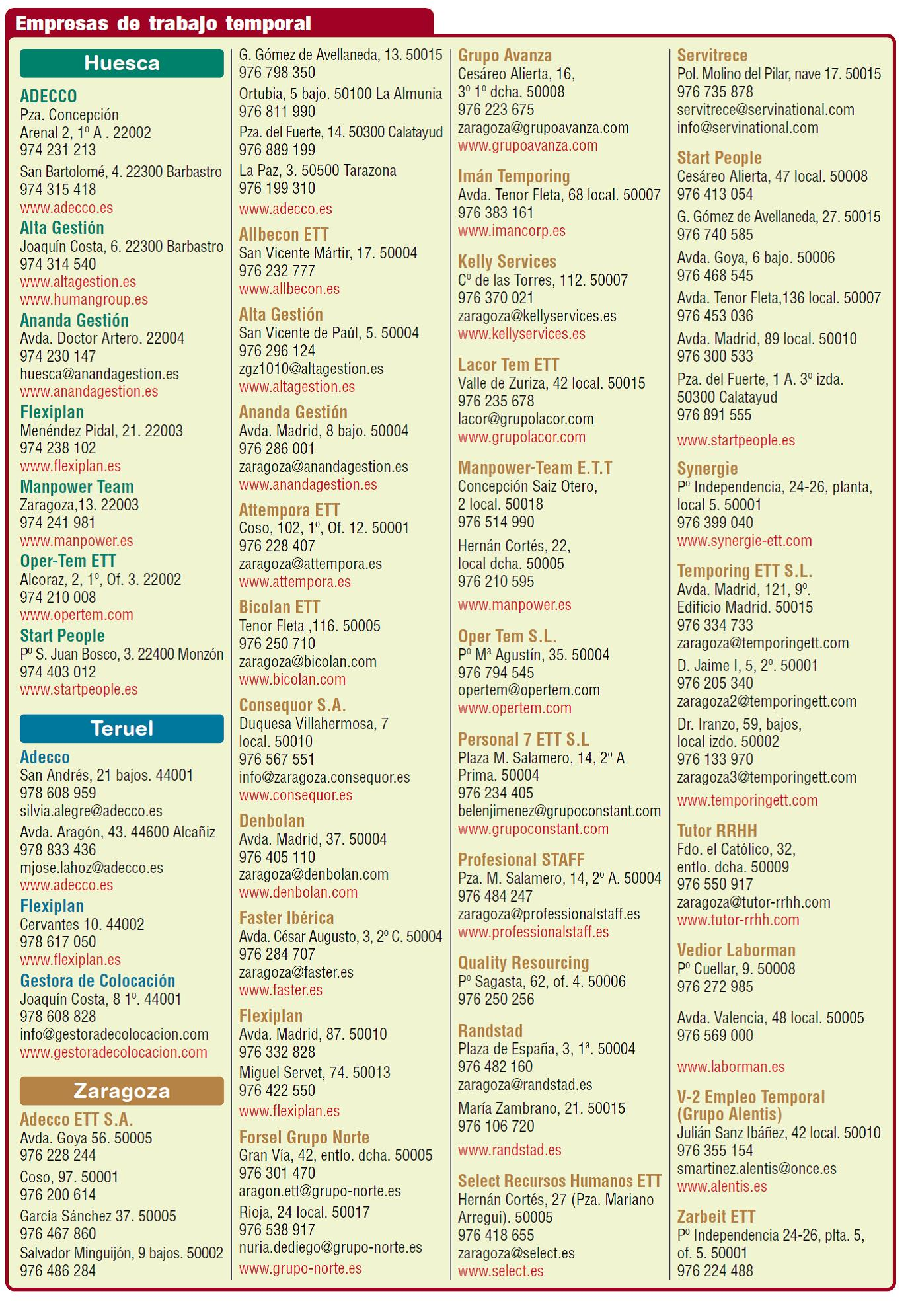 ¿Cuáles son las empresas de trabajo temporal que operan en Aragón?