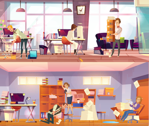 Una oficina desordenada puede producir accidentes que involucren al trabajador