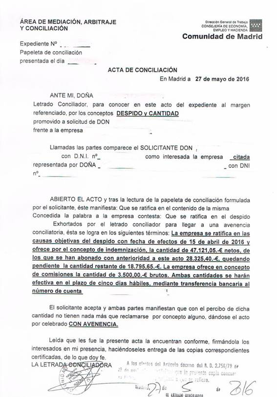 Adjuntamos un ejemplo real de un acta de conciliación (descargar en pdf).