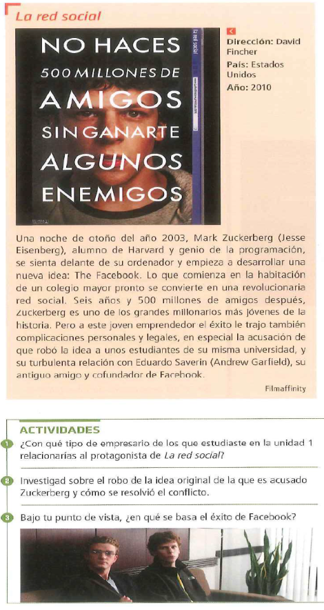 - De las características que debía tener un emprendedor señala las que crees que posee el personaje (Mark Zuckerberg). Realiza la misma actividad con el personaje de Sean Parker. Argumenta la respuesta.