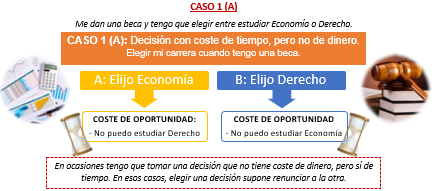 En esta ocasión, como tenemos una beca vemos que no hay coste de dinero. Aquí la decisión no tiene más misterio que quedarnos con aquella carrera que nos gusta más. Pero ¿qué ocurre si una de elecciones incluye un coste monetario?