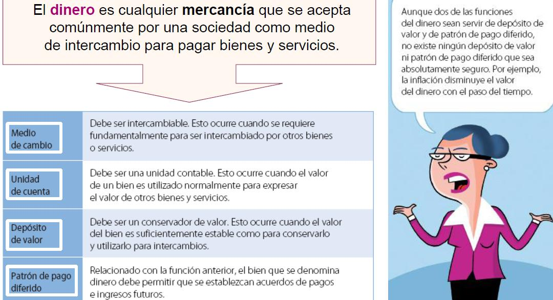 1. El dinero es un medio de cambio o de pago generalmente aceptado por todos para la realización de transacciones y la cancelación de deudas. Su uso facilita el comercio y resuelve las limitaciones que tiene el trueque.