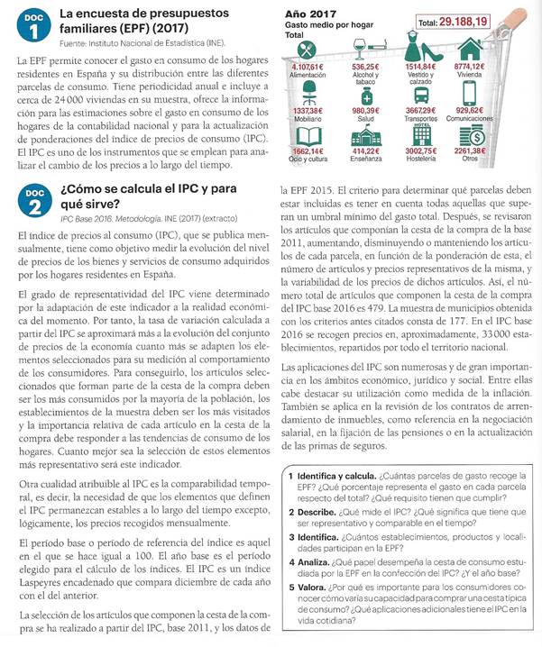 1. El INE, a través de la encuesta de presupuestos familiares, obtiene información sobre cuáles son los bienes y servicios más representativos que adquieren las familias españolas, es decir, los hábitos de consumo. Evidentemente, no todas las familias tienen las mismas necesidades, ni preferencias, ni renta disponible, pero a través de esa encuesta se obtiene una aproximación al comportamiento medio de las mismas.