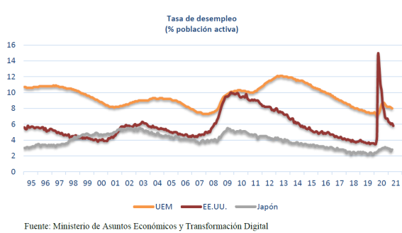 Estados Unidos país miembro de la OCDE donde más bajó el desempleo en enero 2021
