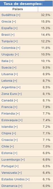 Los países de la OCDE en los que había más desempleados en cifras absolutas en enero eran Estados Unidos (10.130.000), España (3.716.000), Colombia (3.434.000) y México (2.480.000).