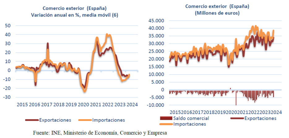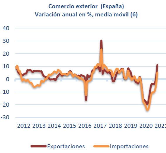 las sanciones posteriores a Rusia cerraron ese mercado, uno de los grandes suministradores españoles, y generaron un alza incontenible de precios (a lo que se unió posteriormente el conflicto con Argelia, el gran proveedor de gas de España), el déficit comercial, que mide la diferencia negativa entre lo que un país importa y lo que exporta, casi se triplicó hasta superar los 68.000 millones de euros, regresando a niveles de 2008, coincidiendo con la Gran Recesión.