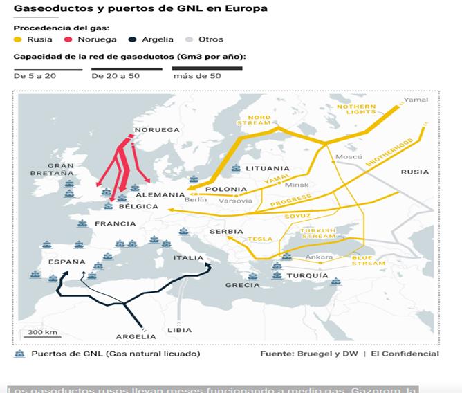 En las actuales negociaciones diplomáticas entre Rusia, EEUU y la OTAN, la Unión Europea no está invitada a la mesa y juega un papel secundario. La respuesta de los Estados miembros al despliegue de Moscú, aunque condenatoria en todos los casos, ha sido más prudente que las de Washington o Reino Unido. Uno de los motivos es que, en un contexto de crisis energética en la que los precios de la electricidad se han disparado en todo el continente, la UE cuenta con una fuerte dependencia del gas natural procedente de Rusia.