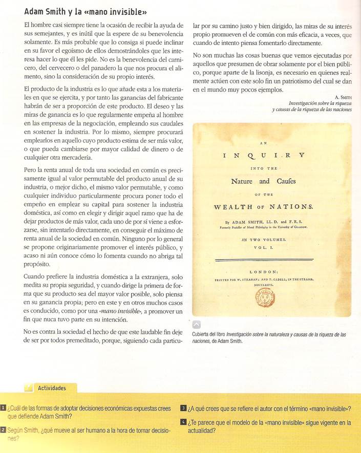 Para que puedan profundizar en la obra de Smith, les presentamos a continuación tres fragmentos de La riqueza de las naciones. Organícense en grupos y elijan un fragmento.
