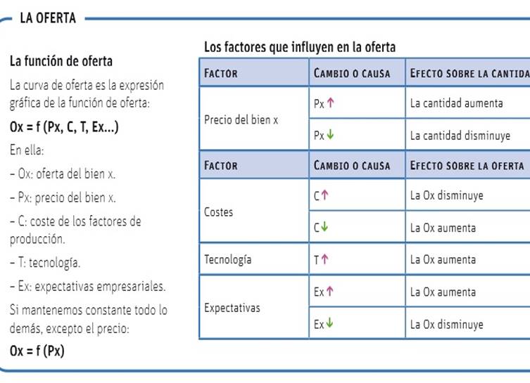 Una curva de oferta describe las combinaciones de precios y cantidades ofrecidas que pueden darse cuando todos los demás factores que influyen en la oferta se mantienen constantes. Se utiliza la expresión latina "ceteris paribus" para aludir a esa condición de "que  todo lo demás permanece igual".