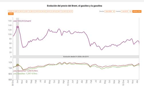 8¿Se corresponde la evolución del precio de la gasolina y el diésel con el precio del petróleo?