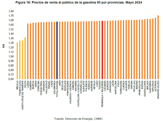 Los datos de las imágenes proceden del Informe mensual de supervisión de la distribución de carburantes en estaciones de servicio, elaborado por la Comisión Nacional de los Mercados y la Competencia (CNMC). En este enlace podéis consultar todos los informes. por si queréis ver los más actuales. Como vemos, ya de entrada el precio antes de impuestos es carísimo en nuestro país.