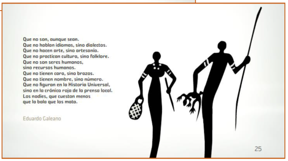Galeano incorpora en su crítica un interesante concepto que tiene que ver con la ridiculización y el desprecio a lo indígena.