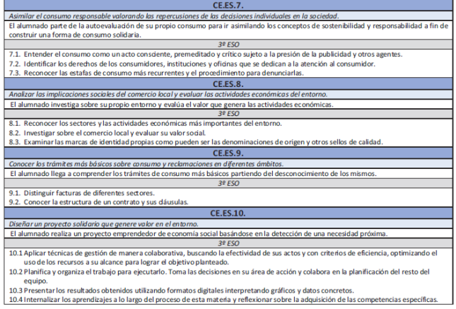 Los criterios de evaluación permiten comprobar si el alumnado ha adquirido las competencias específicas. Cada una de las competencias específicas de esta materia tiene asociados unos criterios de evaluación, detallados en la tabla siguiente que concretan las habilidades, destrezas, actitudes y conocimientos a valorar por el profesorado en el proceso de enseñanza aprendizaje