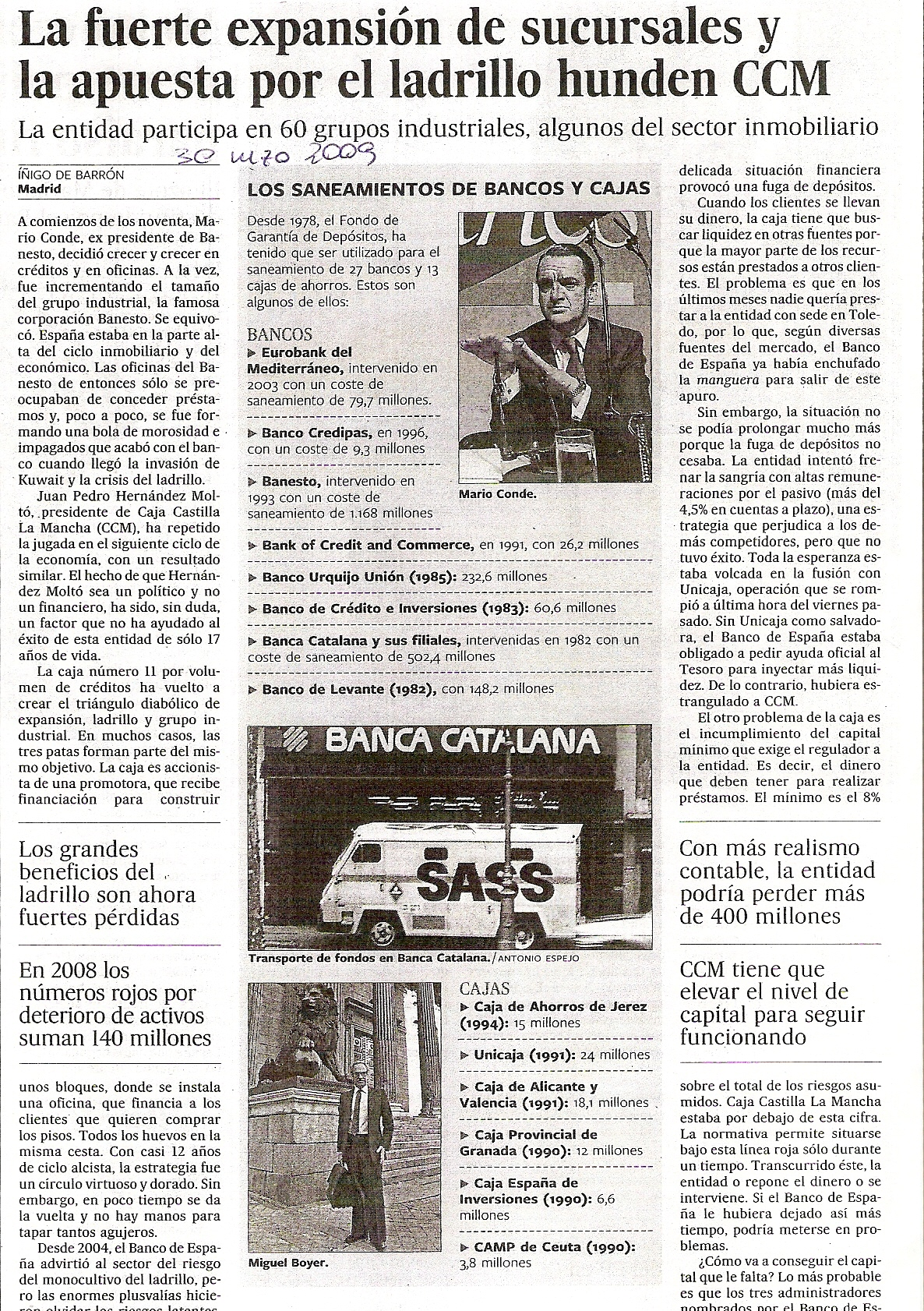 Domingo 29 de marzo de 2009. Cunde el pánico. La intervención de CCM hace añicos la ficción de la solidez del sector financiero español. Fue el principio
