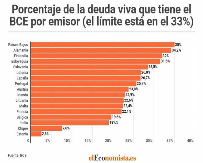 Un informe publicado por Barclays Bank intenta arrojar luz sobre la compra de deuda soberana. El servicio de estudios del banco estima que, de los 218 000 millones invertidos por el BCE, unos 46 000 (el 22 %) corresponden a la compra de bonos españoles. El año pasado, el Tesoro español emitió más de 95 000 millones en bonos y obligaciones.