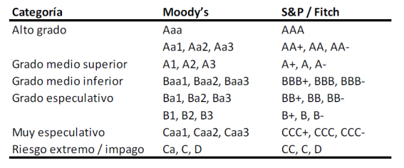 Cuál es la máxima calificación de un activo financiero según cada una de estas calificadoras de riesgo