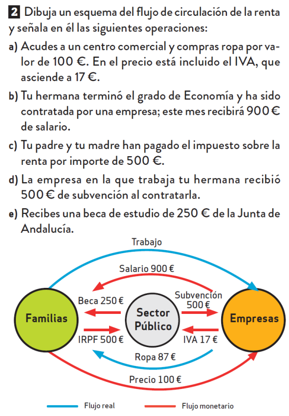 Elabora el diagrama del flujo circular de la renta a partir de los siguientes datos. Detalla cada actividad en las flechas: