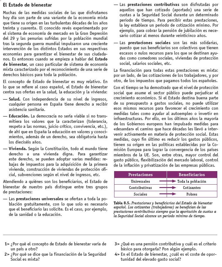 El Estado del bienestar es un modelo político, económico y social en el que se atienden las necesidades fundamentales de los ciudadanos. En un Estado del bienestar, el Gobierno busca mejorar las condiciones de vida de la población mediante la redistribución de la riqueza y gasto público. En este modelo, el Estado se convierte en proveedor de servicios para asegurar el bienestar general de la población. |