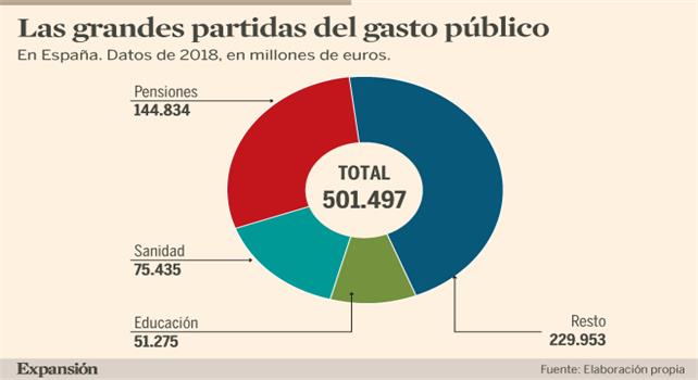 Más de la mitad del gasto público en España se destina a pagar las pensiones, la sanidad y la educación, los tres pilares del Estado de Bienestar. La fuerte caída de ingresos por la crisis pone en cuestión su sostenibilidad y amenaza con recortes.