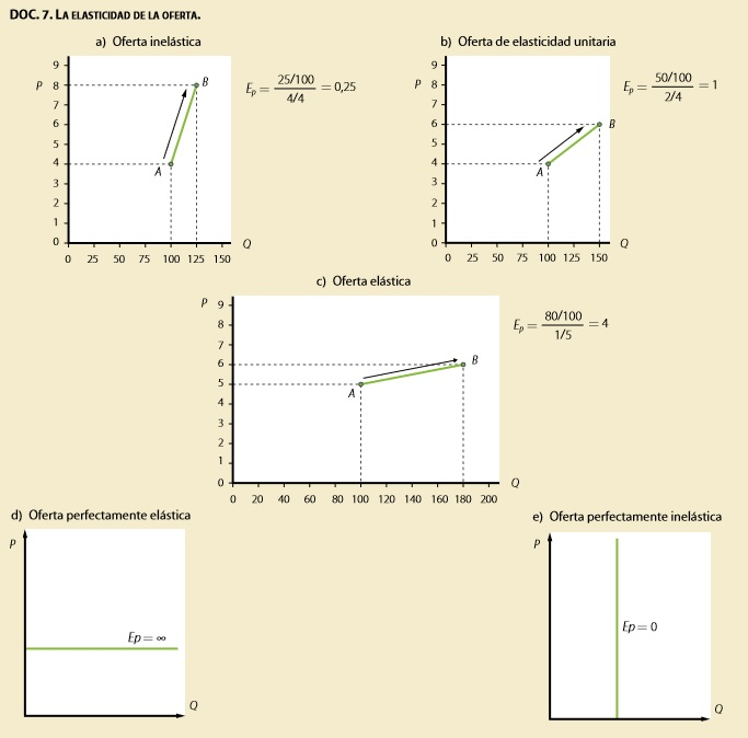 - Si la elasticidad es menor que uno, se dice que la oferta es inelástica.
