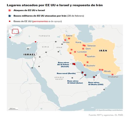 La respuesta de Teherán ha llegado con bombardeos durante la jornada contra distintos puntos de Israel y bases militares de EE UU en Oriente Próximo: se han registrado explosiones en Baréin, Qatar, Emiratos Árabes Unidos, Kuwait, Arabia Saudí, Jordania e Irak. El Gobierno iraní ha emitido una declaración en la que define el ataque como “una prueba para la resistencia nacional del pueblo iraní”.