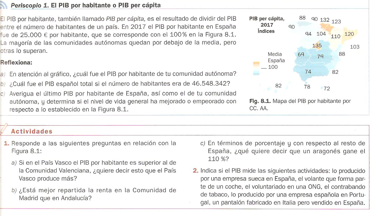 ACTIVIDAD 17 1. ¿Cuáles son las tres comunidades autónomas con mayor PIB pc?